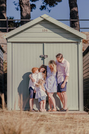 We had an idyllic early morning shoot down in Dorset in August, before the hoardes of holidaymakers descended onto the beach, making the most of the peace and tranquility. That's also when you get the best, softest light. I love the pastel tones of what they're wearing complement the pastels of the beach huts too. Just heaven.